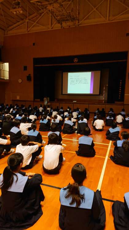 講師に、学校歯科医の先生をお招きし、虫歯の予防法や適切な歯磨きの方法、身の周りに存在している目に見えない雑菌の怖さ等を講演していただきました。