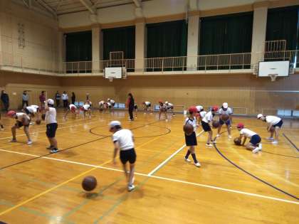 授業では「バスケットボール」を教材としてボールの扱い方、動き方などを学びました。