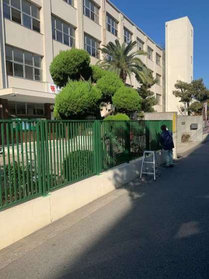 本日も寒い中、管理作業員さんが中心となって、喜連中学校の柵の改修が進んでいます。