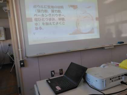 視聴覚機器を使いながら生徒に作り方を説明しながら行われました。
