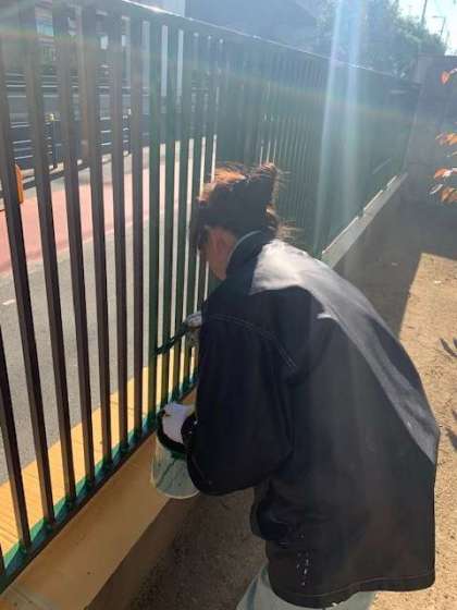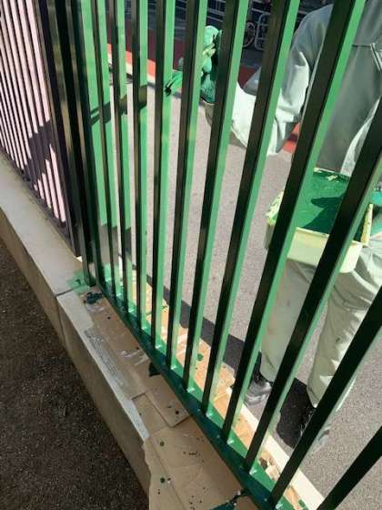 今日も管理作業員さんが柵の塗り替えをすすめています。