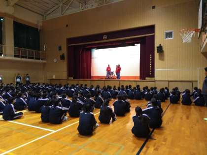 本日、1年生は午前中車椅子、アイマスク体験を行います。