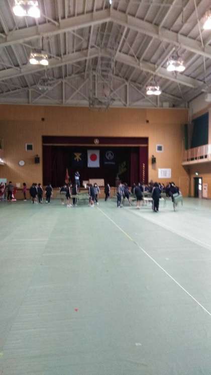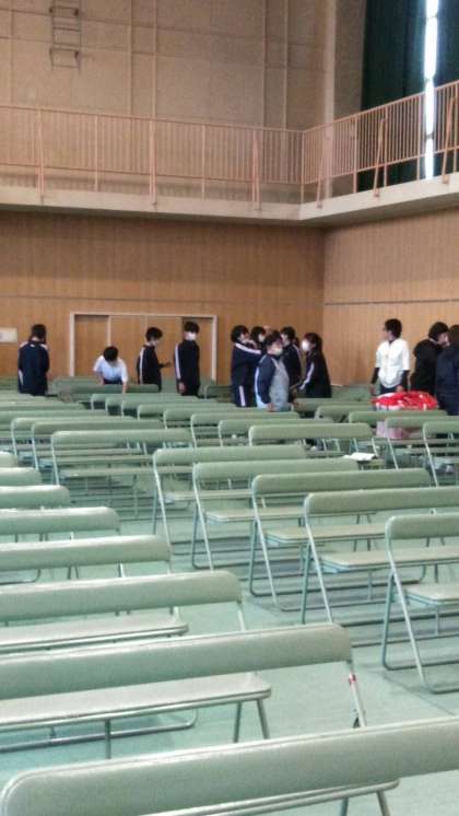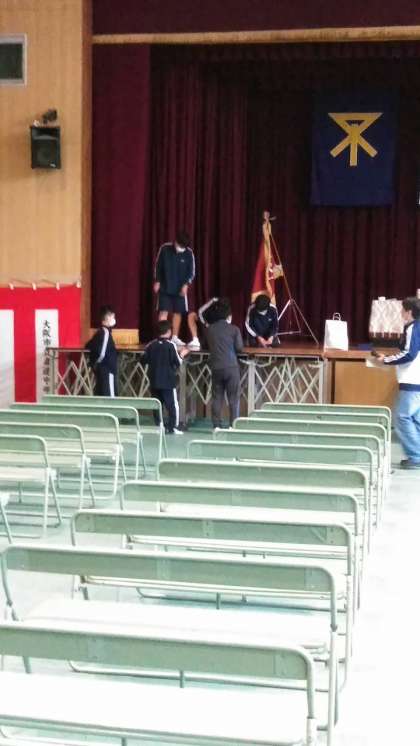 明日の入学式準備を新2年生の生徒と教員で準備を進めています。