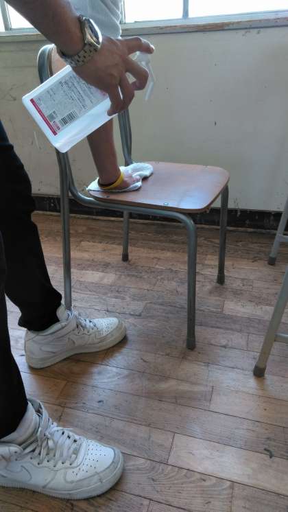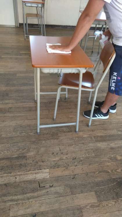 登校日(消毒作業)