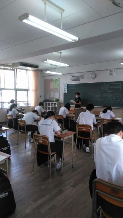 本日より全学年授業を行いました。生徒のみなさんは真剣に取り組んでいました。これからますます暑くなります。水分補給のため、水筒を忘れないでください。