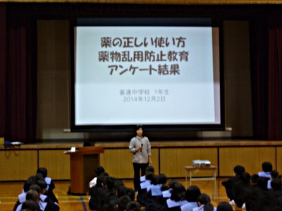 2日(火)は学校薬剤師の乾泰洋先生を講師にお招きし、「薬の正しい使い方」と「薬物乱用」についてわかりやすい説明をしていただき、3日(水)は薬物乱用の誘いに対して有効な断り方について考えました。