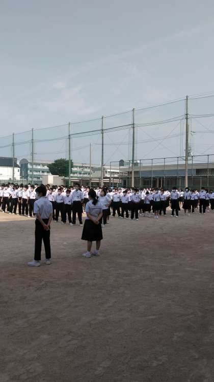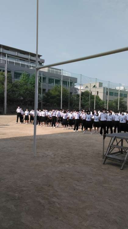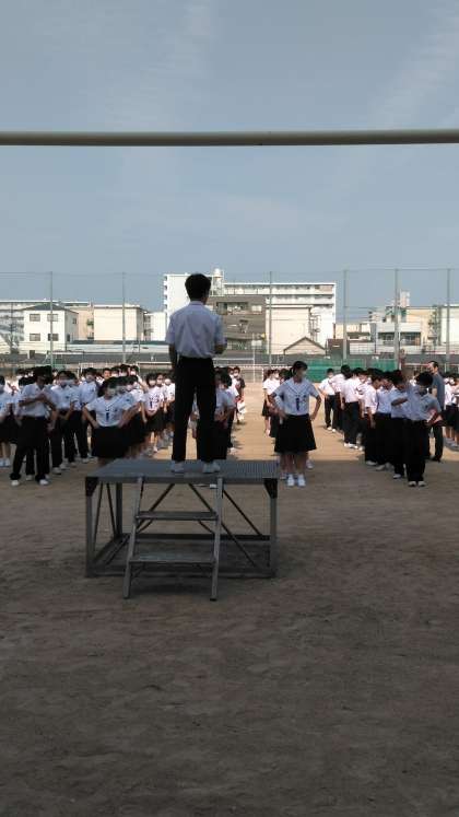 本日久しぶりに運動場で全校集会を行いました。朝から気温が高く、暑くなりそうです。熱中症に気をつけてほしいと思います。