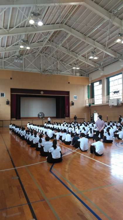 3年生は3限目に学年集会を行いました。どの学年も、生徒の皆さんはしっかり話を聞いていました。今日の先生の話を思い出して、充実した2週間になるように頑張りましょう。