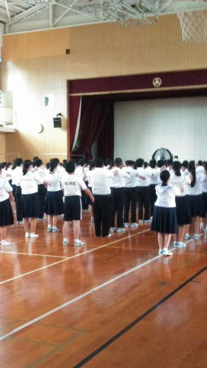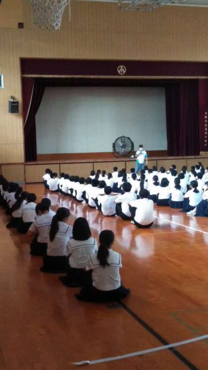 木曜日は2年生の学年集会の日です。生徒のみなさんは先生の話を真剣に聞いていました。