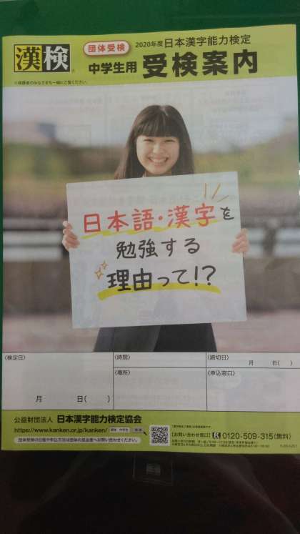 日本漢字能力検定の「受検案内」を生徒のみなさんに配布しました。よろしくお願いいたします。