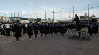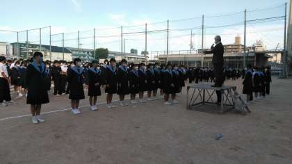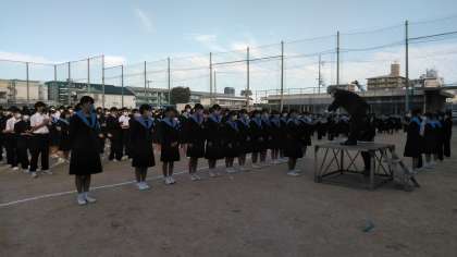 本日全校集会を行いました。ハンドボール部女子に賞状を伝達しました。