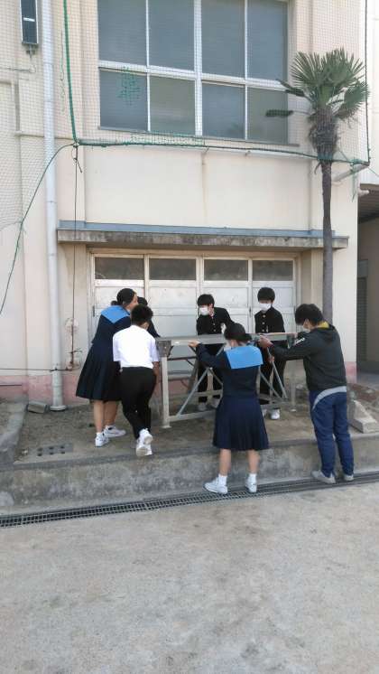 前期生徒会役員が、全校集会の時、いつも朝礼台の準備と後かたづけをしてくれています。ありがとうございます。