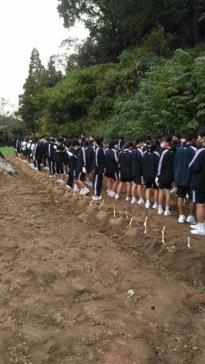 芋掘りの様子です。生徒のみなさんは楽しそうです。