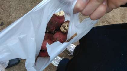 たくさん芋が掘れました。良いおみやげになりました。生徒のみなさんは嬉しそうです。