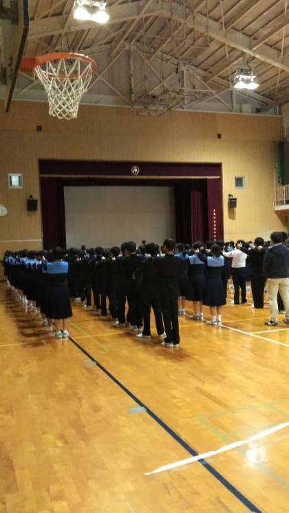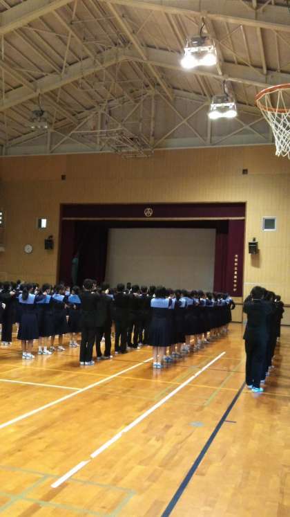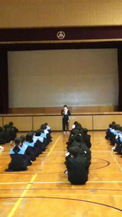 本日は1年生の学年集会の日です。生徒のみなさんは真剣に話を聞いていました。