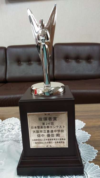 また、顧問の畑中先生は「指揮者賞」を受賞しました。重ねておめでとうございます。