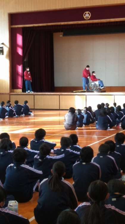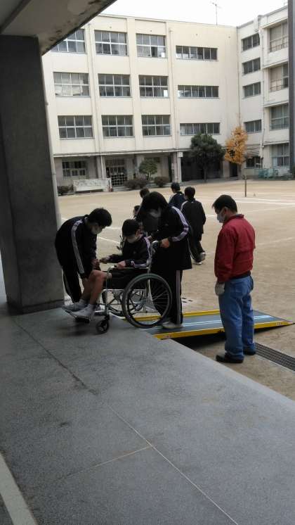 本日午前中に、1年生は車椅子、アイマスク体験学習を行いました。