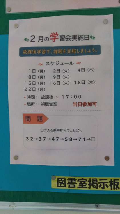 2月の放課後学習会実施日の案内です。