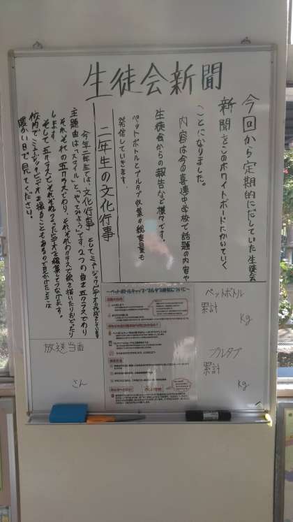職員室前に、「生徒会からのお知らせボード」を設置しました。