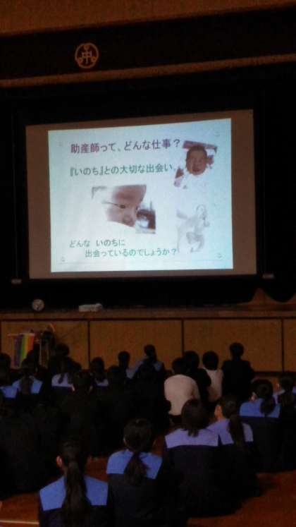 5限目2年生は、助産師さんに来ていただいて、性教育を行っています。
