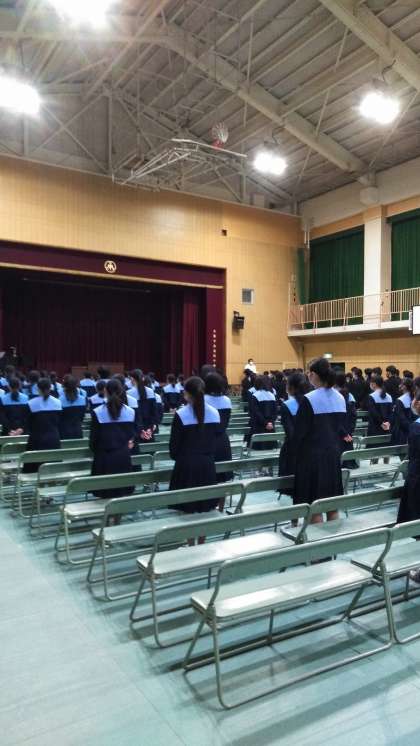 3年生は本日の2、3限目に卒業式の練習を行っています。