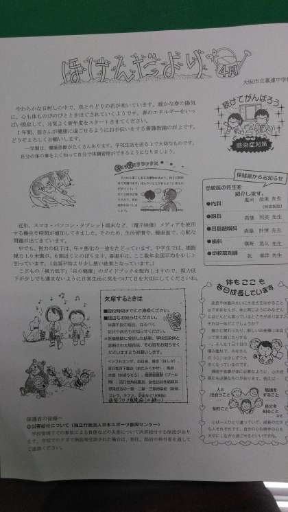 本日、ほけんだより4月号を配布いたしました。