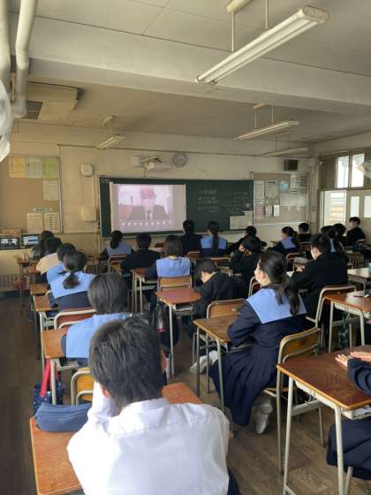 5限目にチームズを使って、リモートで全校集会を行いました。