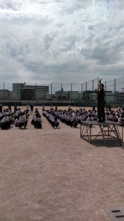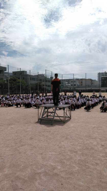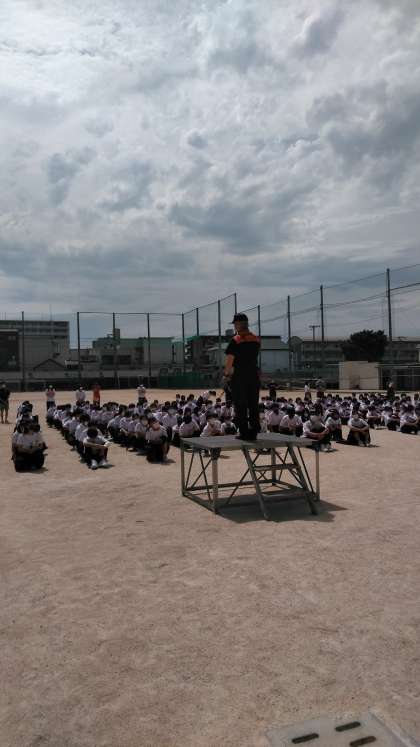 生徒のみなさんは、消防署の方の話をしっかり聞いていました。