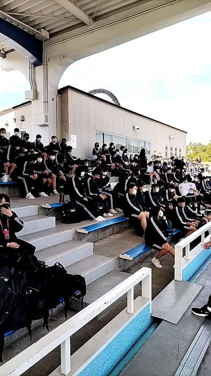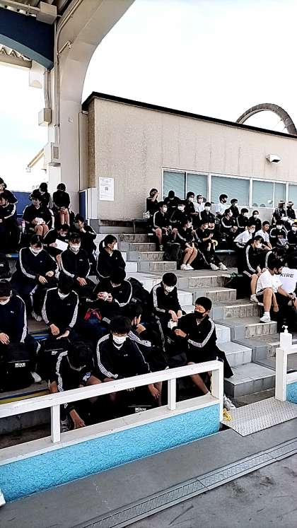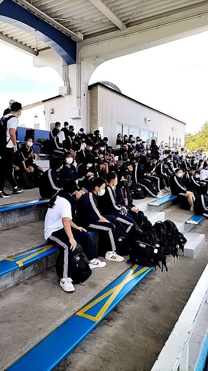 生徒のみなさんは、昼食のためスタジアムに集まりました。