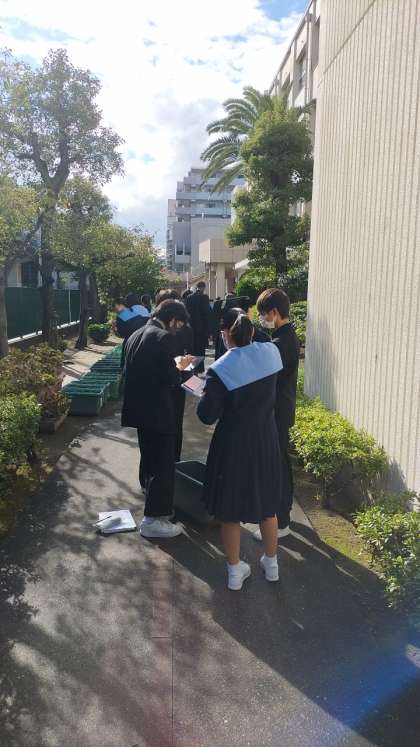 2年生が、技術の授業で、発芽だいこんの観察を行っています。