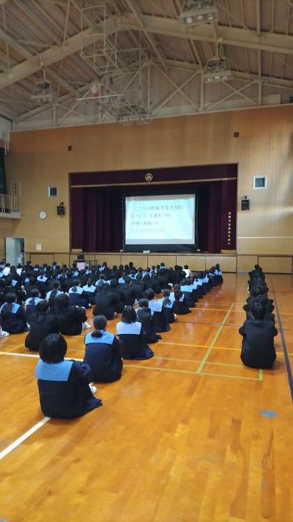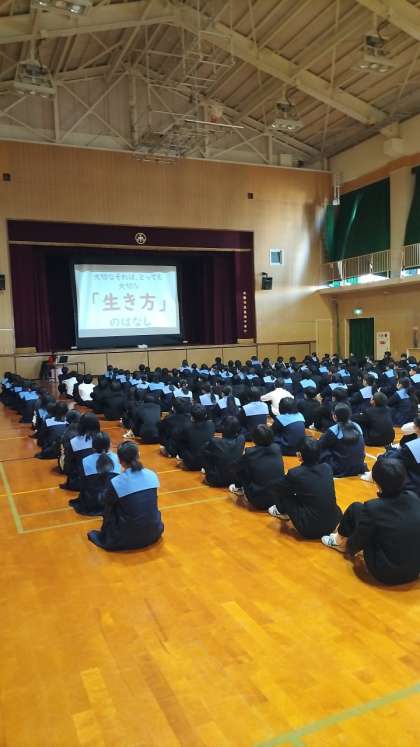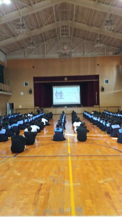 生徒のみなさんは、講師である助産師さんの話をしっかり聞いています。