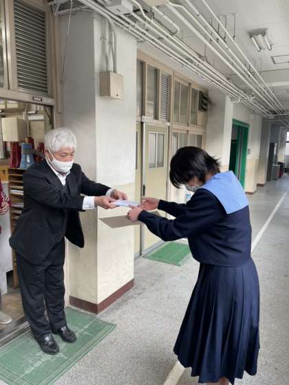 最初に、吹奏楽部と「税の作文」で優秀であった生徒のみなさんに表彰状を伝達しました。