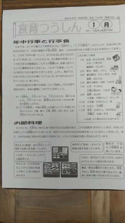 食育つうしん1月号とほけんだより1月号を配布いたしました。