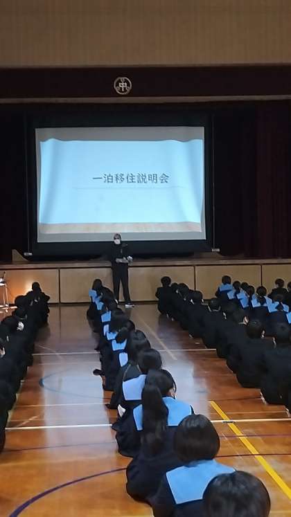 1年生は1限目、一泊移住に向けての取り組みをしています。