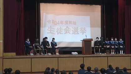 2年生は、3限目に、生徒会選挙の立会演説会を行いました。
