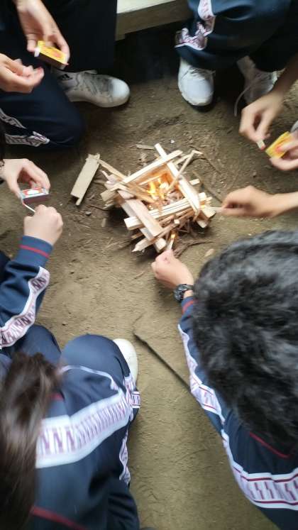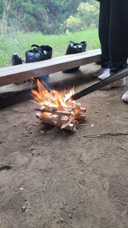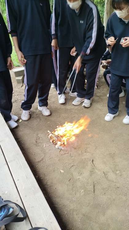 全部の班が火起こしに成功しました。