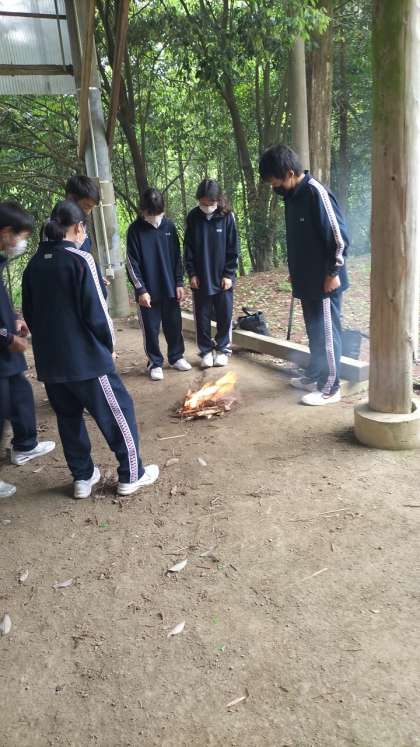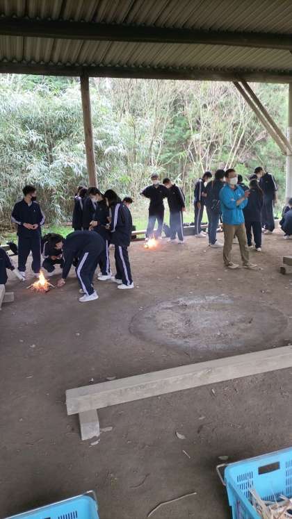 火起こし体験の様子です。