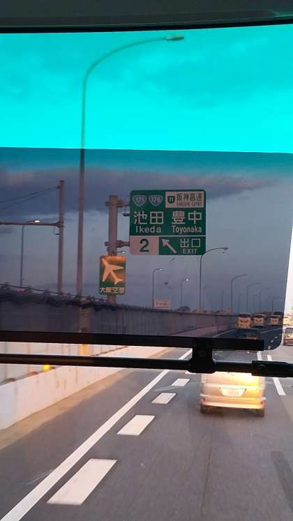中国自動車道を降りて、阪神高速道路に乗りました。学校には7時30分頃に到着する予定です。