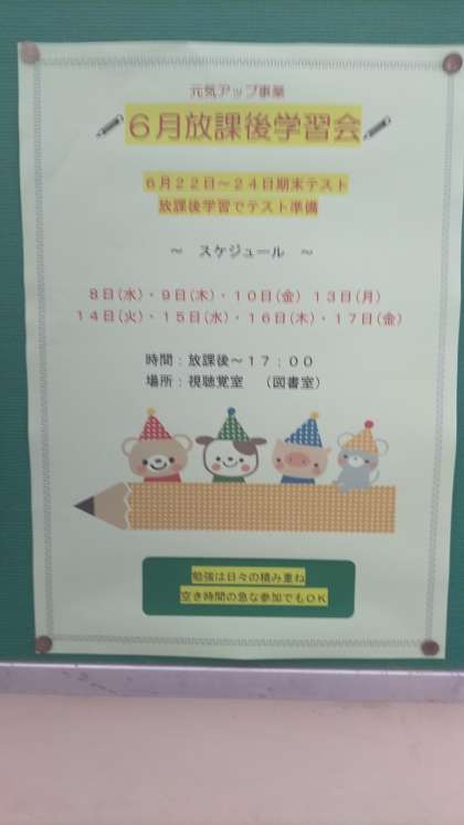 6月の放課後学習会の案内です。