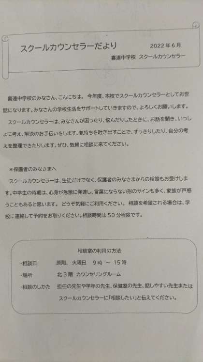 相談を希望される場合は、学校に連絡して、予約をお取りください。