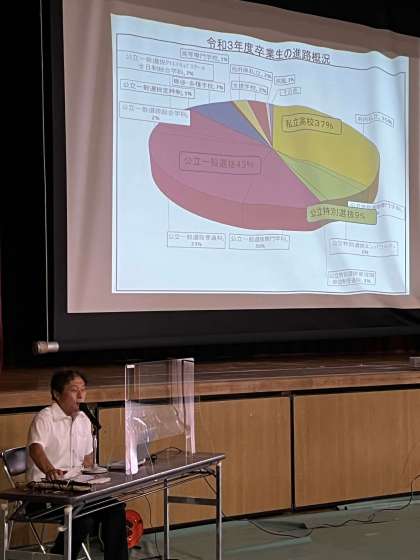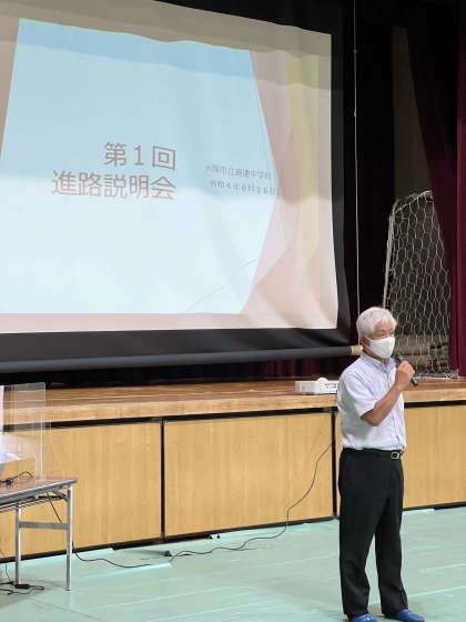 6/16(木)15時30分から体育館にて進路説明会が行われました。本校、進路指導主事から進路についての詳しい説明、今後の方針が語られました。