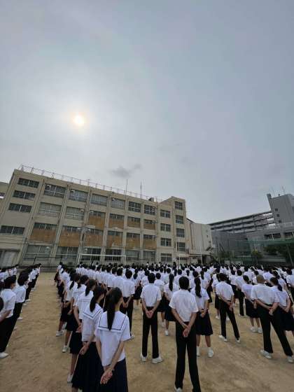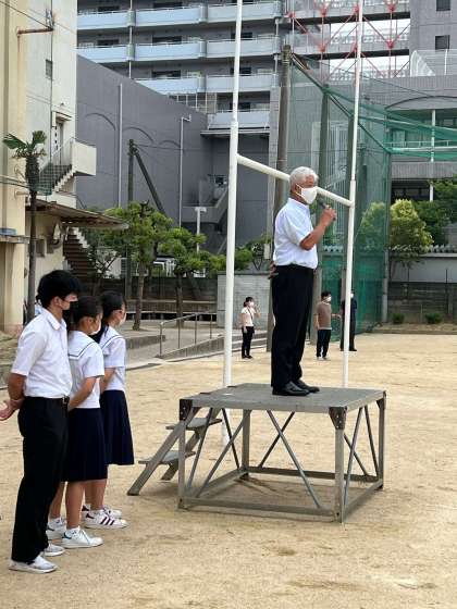 全校集会で校長先生からあ話がありました。今週は一学期の期末テストがありますが、気温も上がって熱中症に気をつけながら体調管理をしましょう。