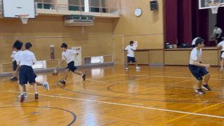 男子バスケットボール部が攻撃の練習を繰り返しています。動きが早くとてもキレがありますね。