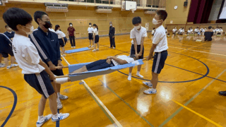 負傷者搬送を体験中です。