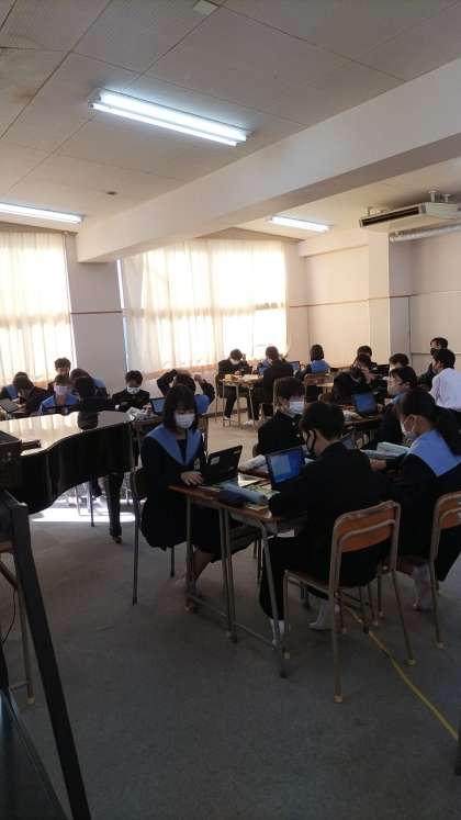1年生の音楽、2年生女子の体育の研究授業の様子です。