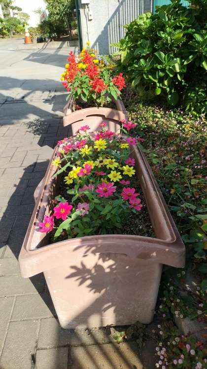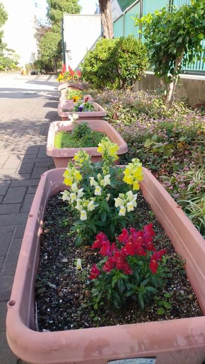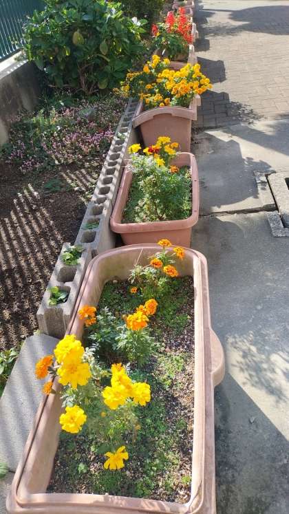 管理作業員さんが、日々手入れしてくれているおかげで、玄関の花がきれいに咲いています。