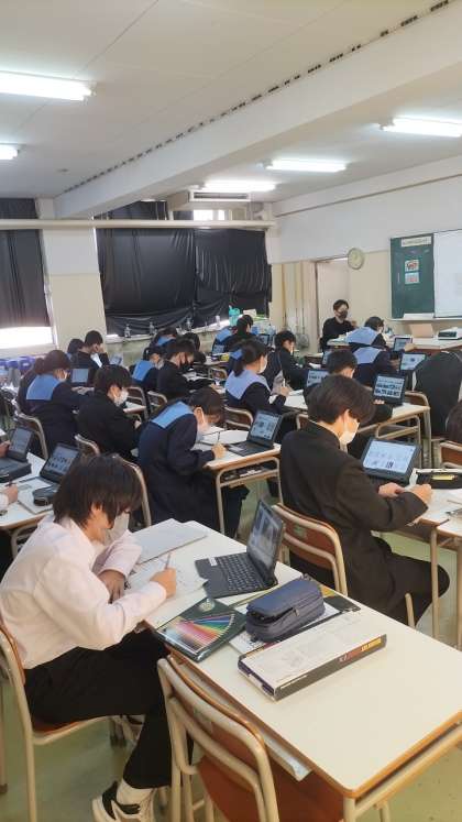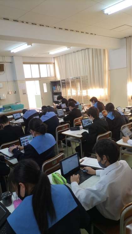 1年生のタブレットを有効活用した美術の授業の様子です。