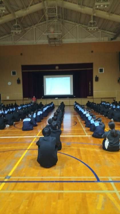 6限目、2年生は進路指導主事の先生から、来年の進路についての話を聞いています。