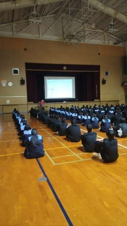 生徒のみなさんは、真剣に話を聞いています。