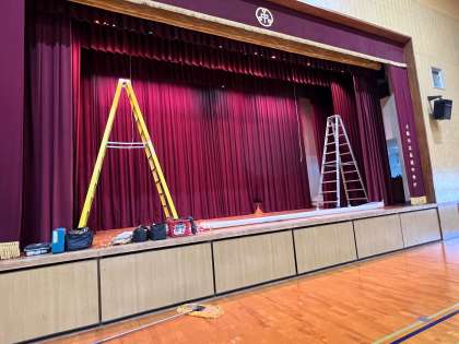 創立50周年記念事業の寄贈品として、老朽化した体育館スクリーンと幕の新調と付け替え工事が1/25(水)から27(金)にかけて行われます。